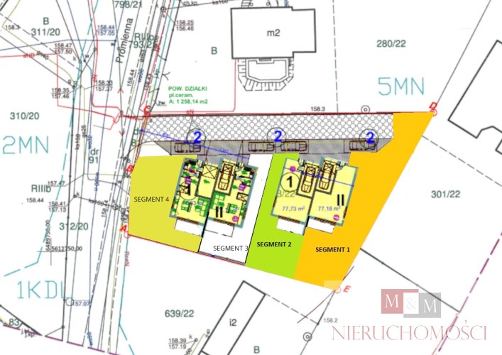 Oferujemy do zakupu segment lewy (segment 3) budynku dwulokalowego, posadowiony na pięknie nasłonecznionej działce o powierzchni około 2 ara. Inwestycja ma charakter kameralny, realizowana jest w cichej części Opola, w dzielnicy Chmielowice, przy luźno zabudowanej ulicy Promiennej (dojazd drogą asfaltową).