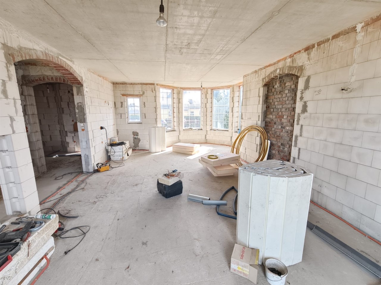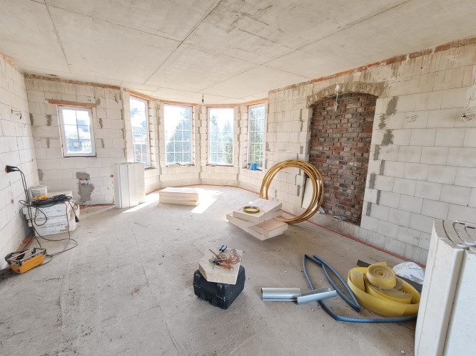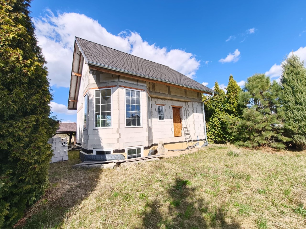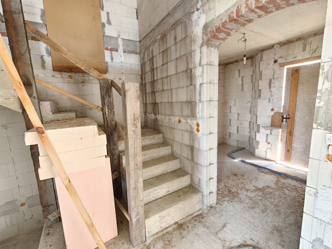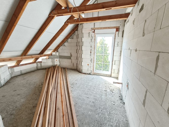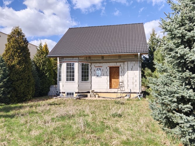 Stan budowy: Surowy zamknięty (solidne mury, dach, stolarka okienna).