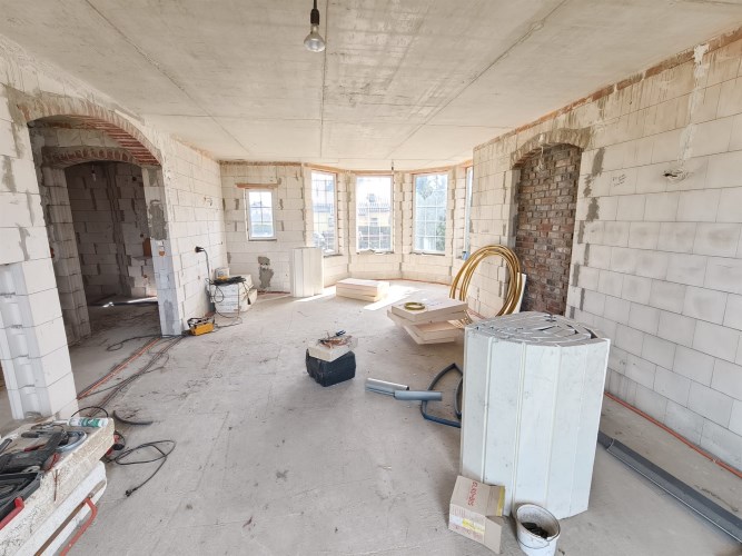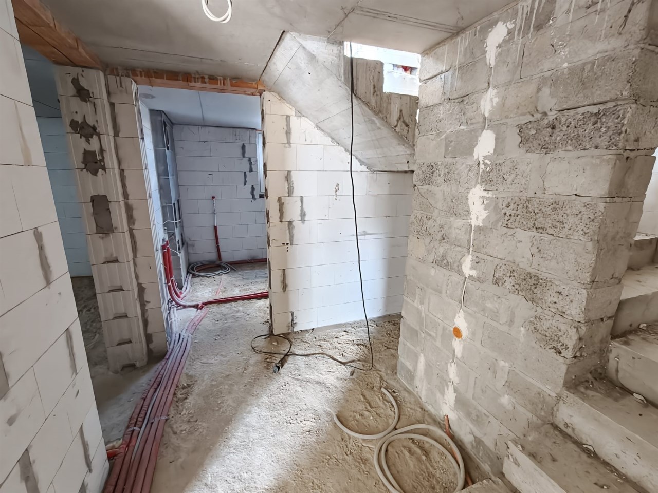 Poziom -1: Przestrzeń przygotowana pod kuchnię, łazienkę oraz pokoje mieszkalne. Wysokość i doświetlenie pozwalają na komfortowe użytkowanie.