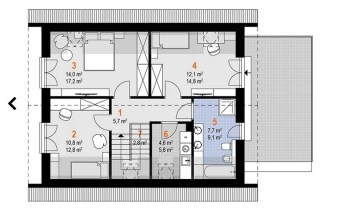 Z opisu projektanta: "Jagoda to uroczy dom z poddaszem użytkowym, który przy stosunkowo niedużej powierzchni oferuje bardzo bogaty program funkcjonalny. Parter to strefa dzienna z otwartą kuchnią i salonem, z którego wyjście prowadzi wprost do ogrodu. Na poddaszu zaplanowano trzy przytulne sypialnie oraz łazienkę. Dołączony garaż w bryle budynku zapewnia wygodę i dodatkową przestrzeń gospodarczą."