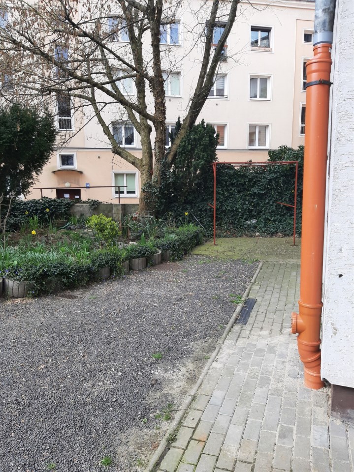 Budynek jest dobrze zarządzany i utrzymany, mieszkańcy mają do dyspozycji duży strych, a także rzadką w centrum miasta możliwość parkowania auta na posesji (własność wspólnoty!).