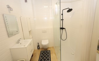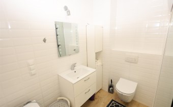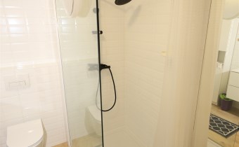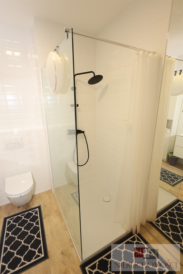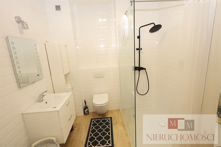 Łazienka: Nowoczesna, połączona z WC, wykończona materiałami wysokiej klasy.