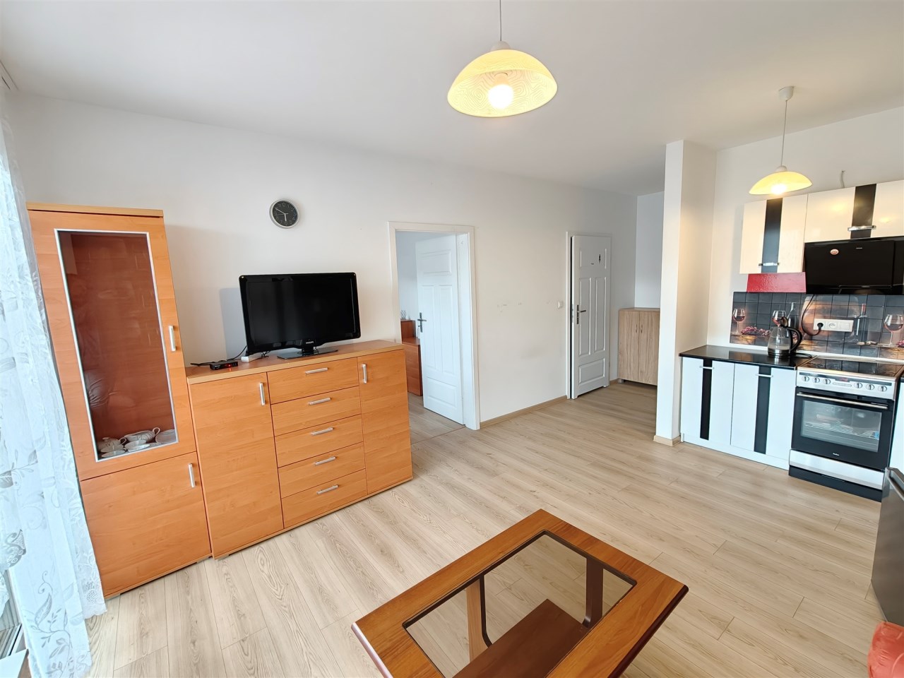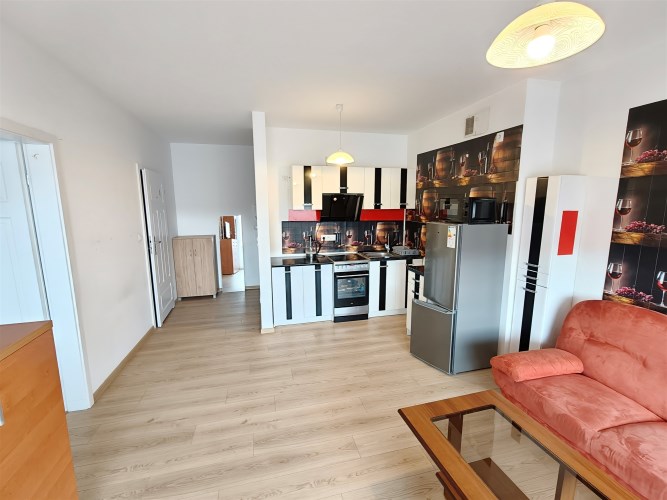 Salonu z aneksem kuchennym: Jasny i ustawny, z wyjściem na balkon.