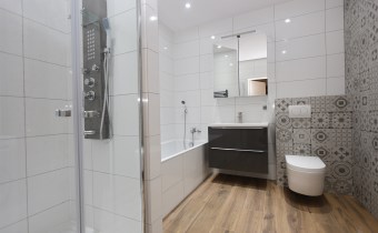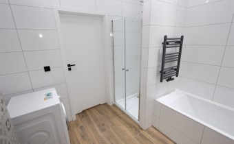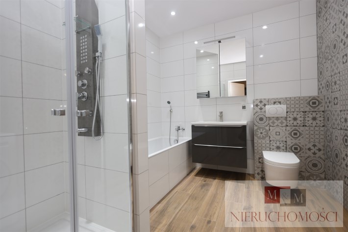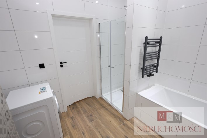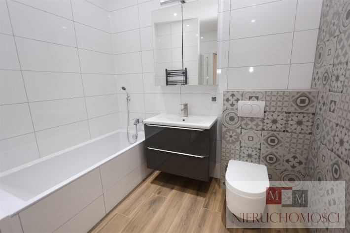 Łazienkę z wanną: Nowocześnie urządzona, zapewniająca komfort użytkowania.