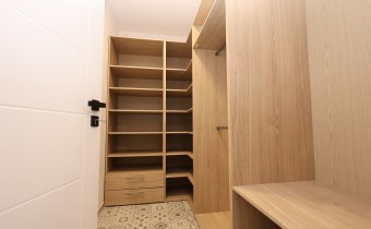 Przestronny salon z aneksem kuchennym: Idealne miejsce do relaksu i spędzania czasu z bliskimi. Aneks kuchenny jest w pełni wyposażony w nowoczesne meble na wymiar oraz wysokiej klasy sprzęt AGD (płyta indukcyjna, piekarnik, lodówka, zmywarka).