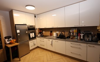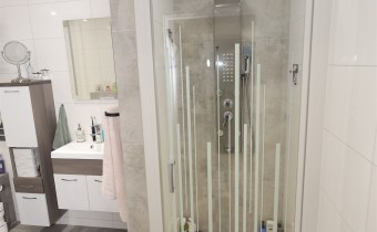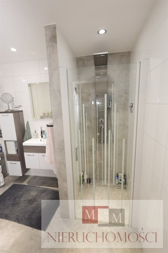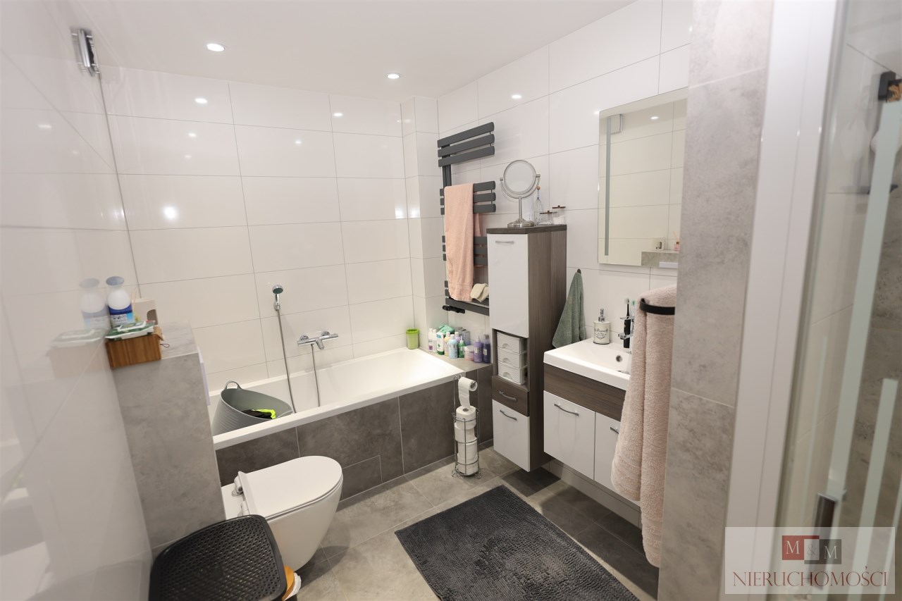 Łazienka wykafelkowana wyposażona w wannę i kabinę prysznicową. Apartament wyposażony w meble kuchenne w zabudowie wraz ze sprzętem AGD: zmywarka, płyta indukcyjna, pochłaniacz, piekarnik, chłodziarko-zamrażarka, pralka.Ogrzewanie podłogowe na bazie nowoczesnego piecyka gazowego dwufunkcyjnego.