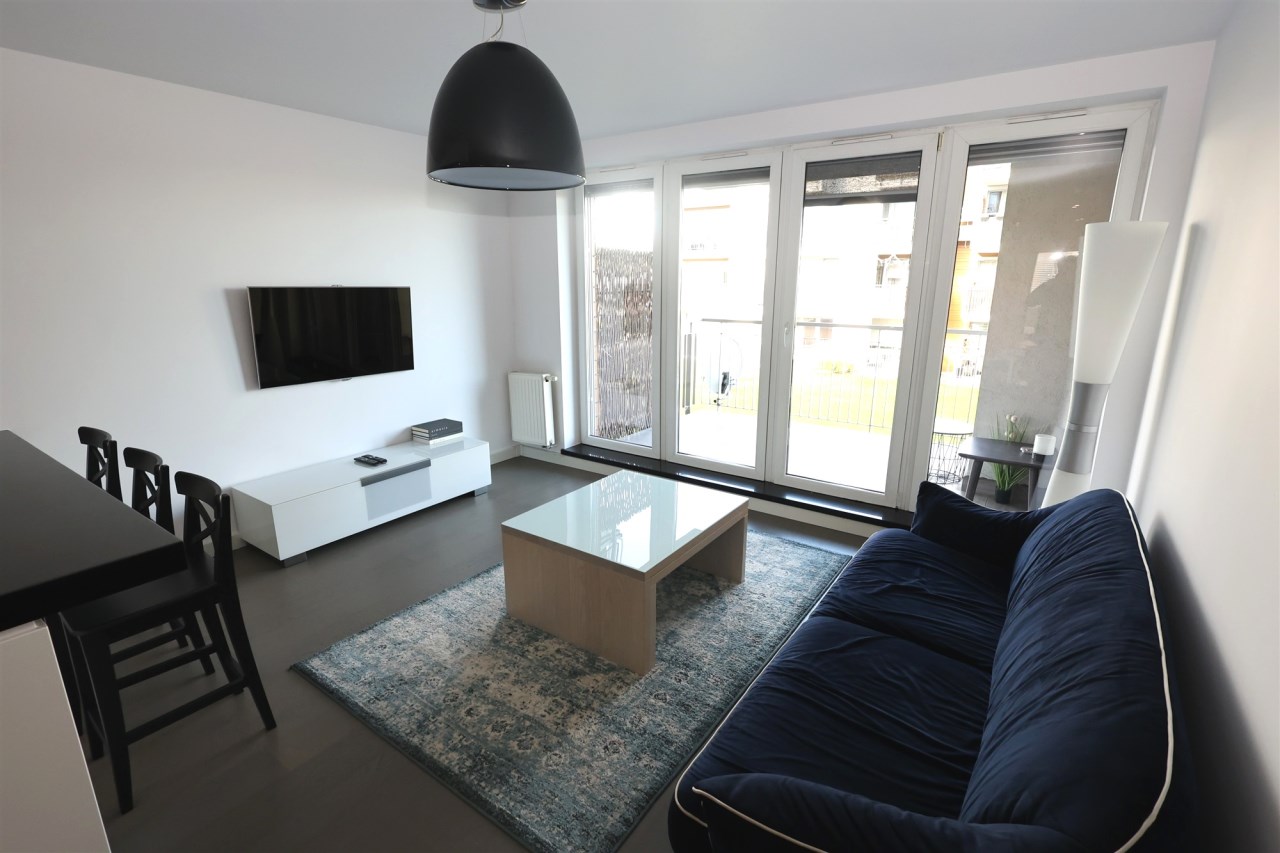 Oferujemy na wynajem nowoczesny, dwustronny i rozkładowy apartament wykończony w wysokim standardzie. Mieszkanie jest bardzo jasne, funkcjonalne i gotowe do wprowadzenia się bez dodatkowych nakładów.