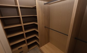 • Przestronny salon z aneksem kuchennym: Idealne miejsce do relaksu i spędzania czasu z bliskimi. Aneks kuchenny jest w pełni wyposażony w nowoczesne meble na wymiar oraz wysokiej klasy sprzęt AGD (płyta indukcyjna, piekarnik, lodówka, zmywarka).