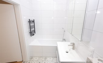 • Łazienkę z wanną: Nowocześnie urządzona, zapewniająca komfort użytkowania.