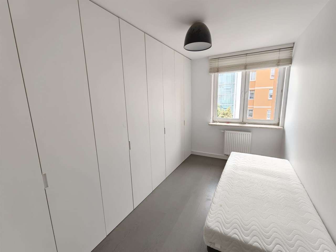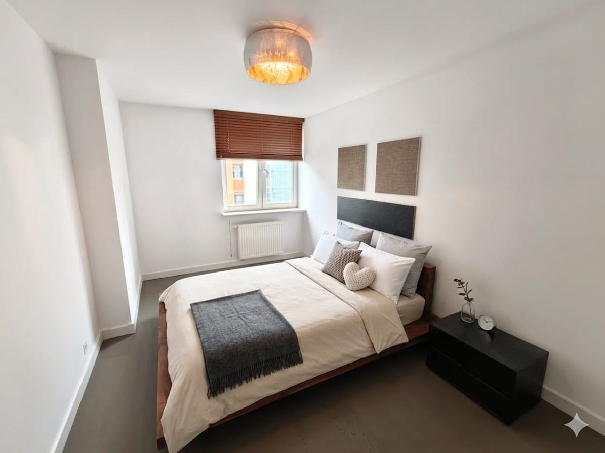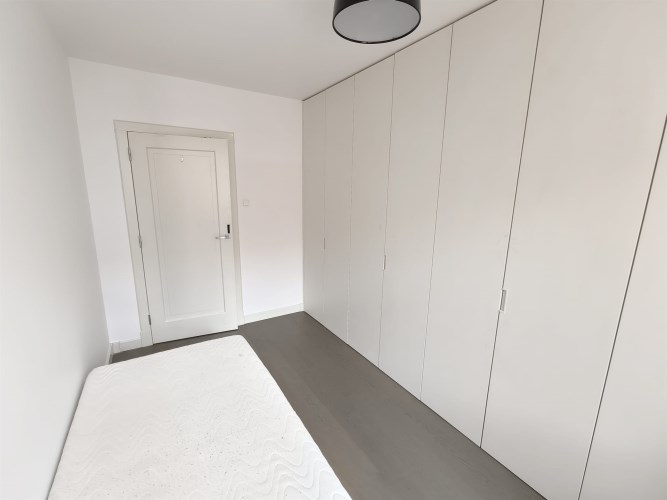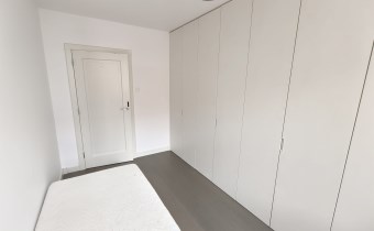 Sypialnia nr 2: Wyposażona w pojemny system szaf w zabudowie, idealna jako pokój dla dziecka, biuro lub garderoba.