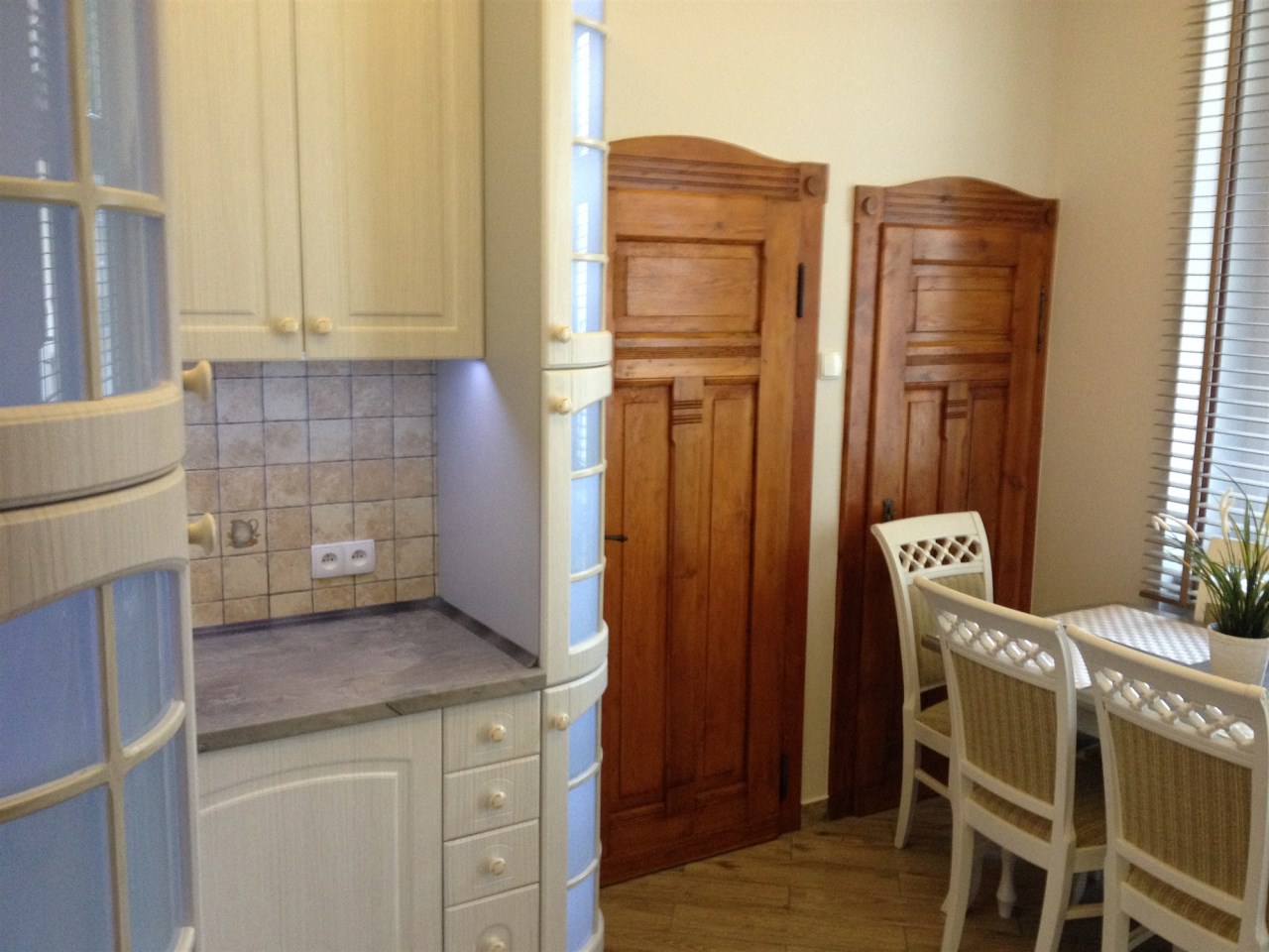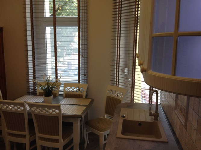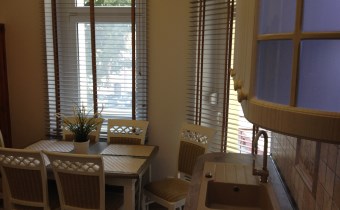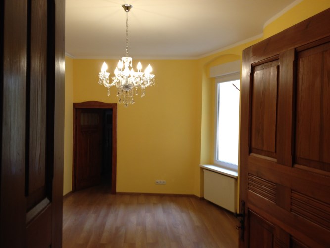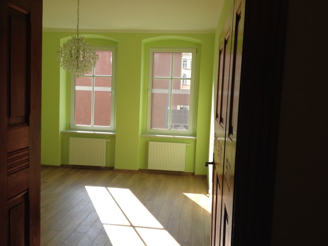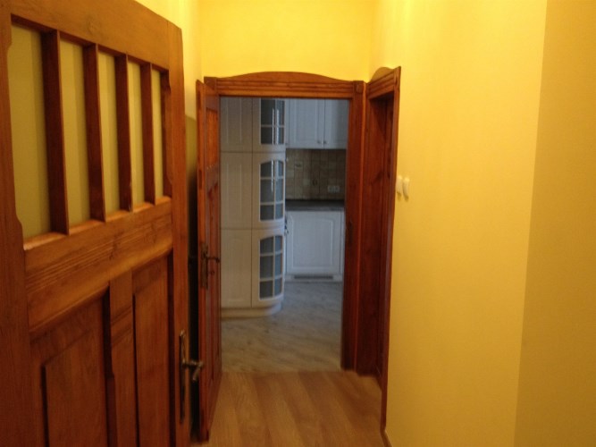 Składa się z 3 ustawnych pokoi, stylowo urządzonej kuchni, łazienki, przedpokoju oraz małej spiżarki i pomieszczenia gospodarczego. Najemca może korzystać również z dużej piwnicy (ok. 12m2).